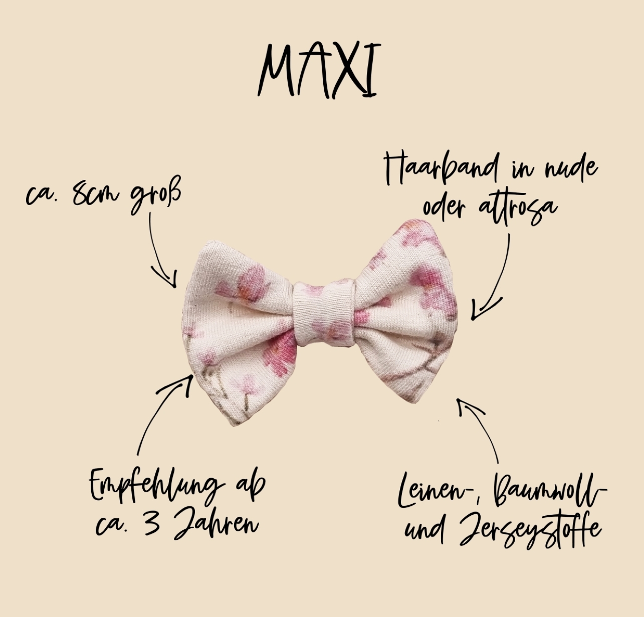 Unsere Haarschleifen werden auf einer weißen Karte befestigt und lassen sich wunderbar verschenken. Das Schleifchen BELLA ist aus hochwertigem Bio-Jersystoff von Hand gefertigt – daher gleicht keine Harrschleife der anderen. Unsere Schleifen sind in den Größen mini, midi und maxi erhältlich und werden auf einem hochwertigen Nylon-Haarband befestigt. Die Haarbänder sind ca. 5mm breit und in den Farben nude und altrosa erhältlich. Durch ihre hohe Elastizität wachsen unsere Haarbändchen mit – passend von Newborn bis ins Kleinkindalter.