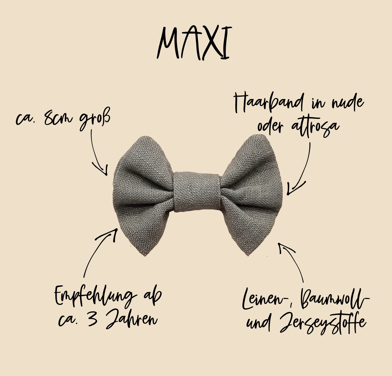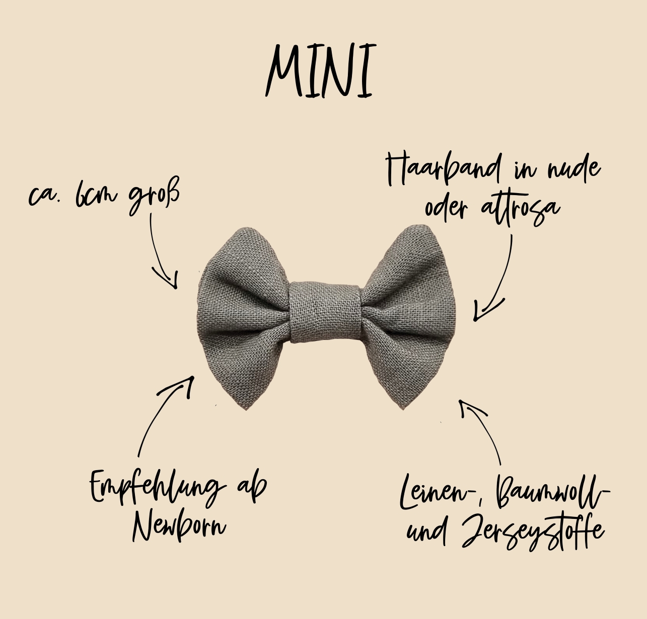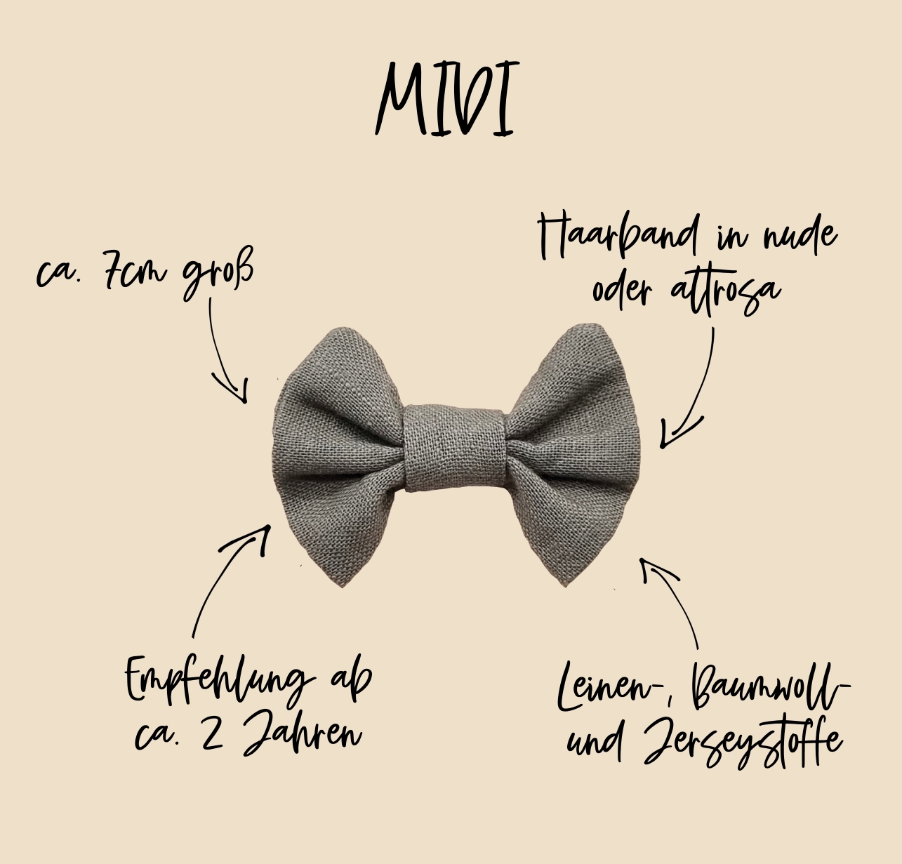 Unsere Haarschleifen werden auf einer weißen Karte befestigt und lassen sich wunderbar verschenken. Das Schleifchen NELE ist aus hochwertigem Leinenstoff von Hand gefertigt – daher gleicht keine Harrschleife der anderen. Unsere Schleifen sind in den Größen mini, midi und maxi erhältlich und werden auf einem hochwertigen Nylon-Haarband befestigt. Die Haarbänder sind ca. 5mm breit und in den Farben nude und altrosa erhältlich. Durch ihre hohe Elastizität wachsen unsere Haarbändchen mit – passend von Newborn bis ins Kleinkindalter.