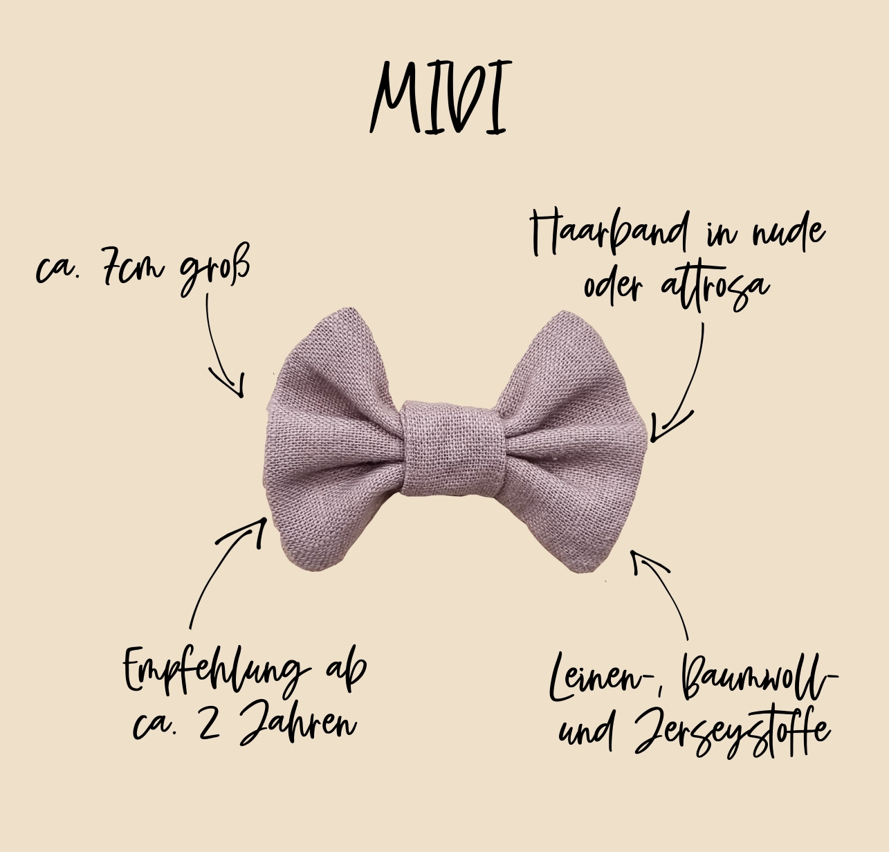 Unsere Haarschleifen werden auf einer weißen Karte befestigt und lassen sich wunderbar verschenken. Das Schleifchen SOPHIE ist aus hochwertigem Leinenstoff von Hand gefertigt – daher gleicht keine Harrschleife der anderen. Unsere Schleifen sind in den Größen mini, midi und maxi erhältlich und werden auf einem hochwertigen Nylon-Haarband befestigt. Die Haarbänder sind ca. 5mm breit und in den Farben nude und altrosa erhältlich. Durch ihre hohe Elastizität wachsen unsere Haarbändchen mit – passend von Newborn bis ins Kleinkindalter.